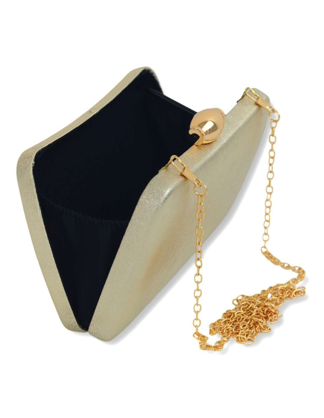 * Exterior: Confecionada em 100% Poliester), um material resistente e com um toque agradável, que realça o brilho da clutch.
