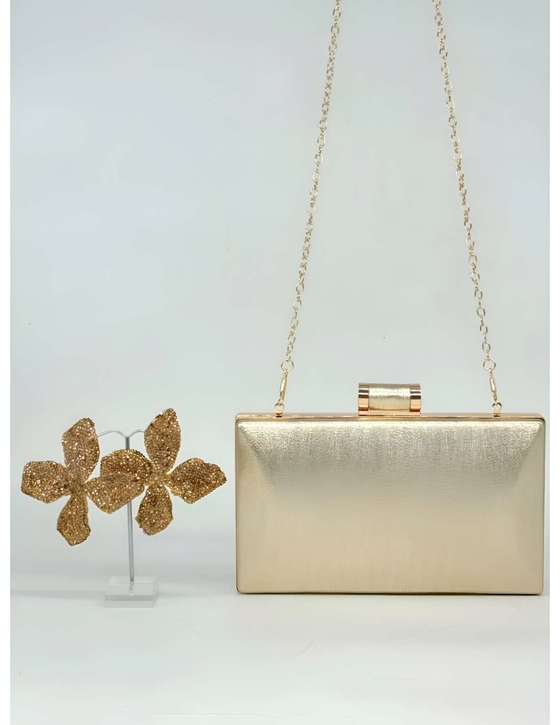 Set Brincos + clutch. Com um formato caixa estruturado e um acabamento com brilho dourado, esta clutch irradia elegância e modernidade. O seu brilho subtil, mas impactante, garante que você se destaque com um toque de sofisticação. Dourado Prateado Rosa Gold.