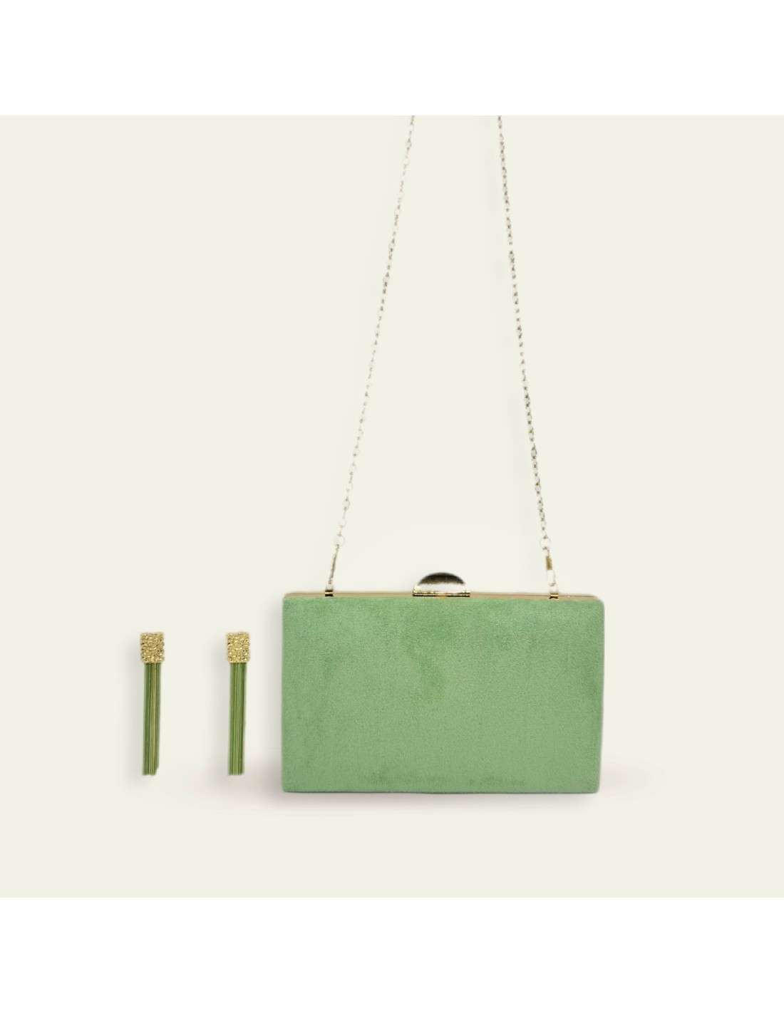 Brincos + Clutch com toque de camurça suave ,em formato rectangular. Interior forrado onde pode levar telemovel de qualquer tamanho.com 2 cordoes  dourados, de mao e  ombro . Brincos anti-alergicos conforme foto