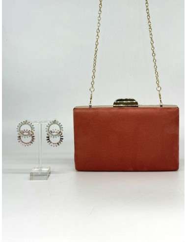 Brincos + Clutch com toque de camurça suave ,em formato rectangular. Interior forrado onde pode levar telemovel de qualquer tamanho.com 2 cordoes  dourados, de mao e  ombro . Brincos anti-alergicos conforme foto