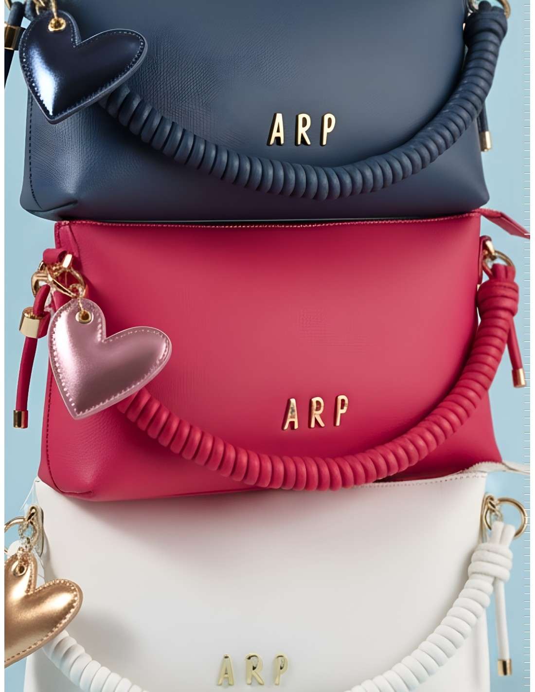 Para um estilo mais sóbrio, mas igualmente luxuoso, a linha Elegance Monogram apresenta carteiras em pele sintética de grão fino. O destaque vai para a faixa central metalizada que ostenta as iniciais "ARP" em letras douradas tridimensionais, garantindo um visual premium.