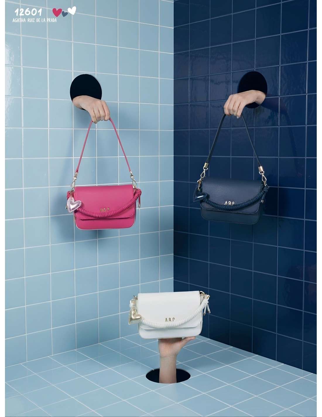 Mala de ombro Agatha Ruiz de la Prada com aba e monograma ARP. Design elegante com alça em corda e pendente de coração para um look sofisticado.