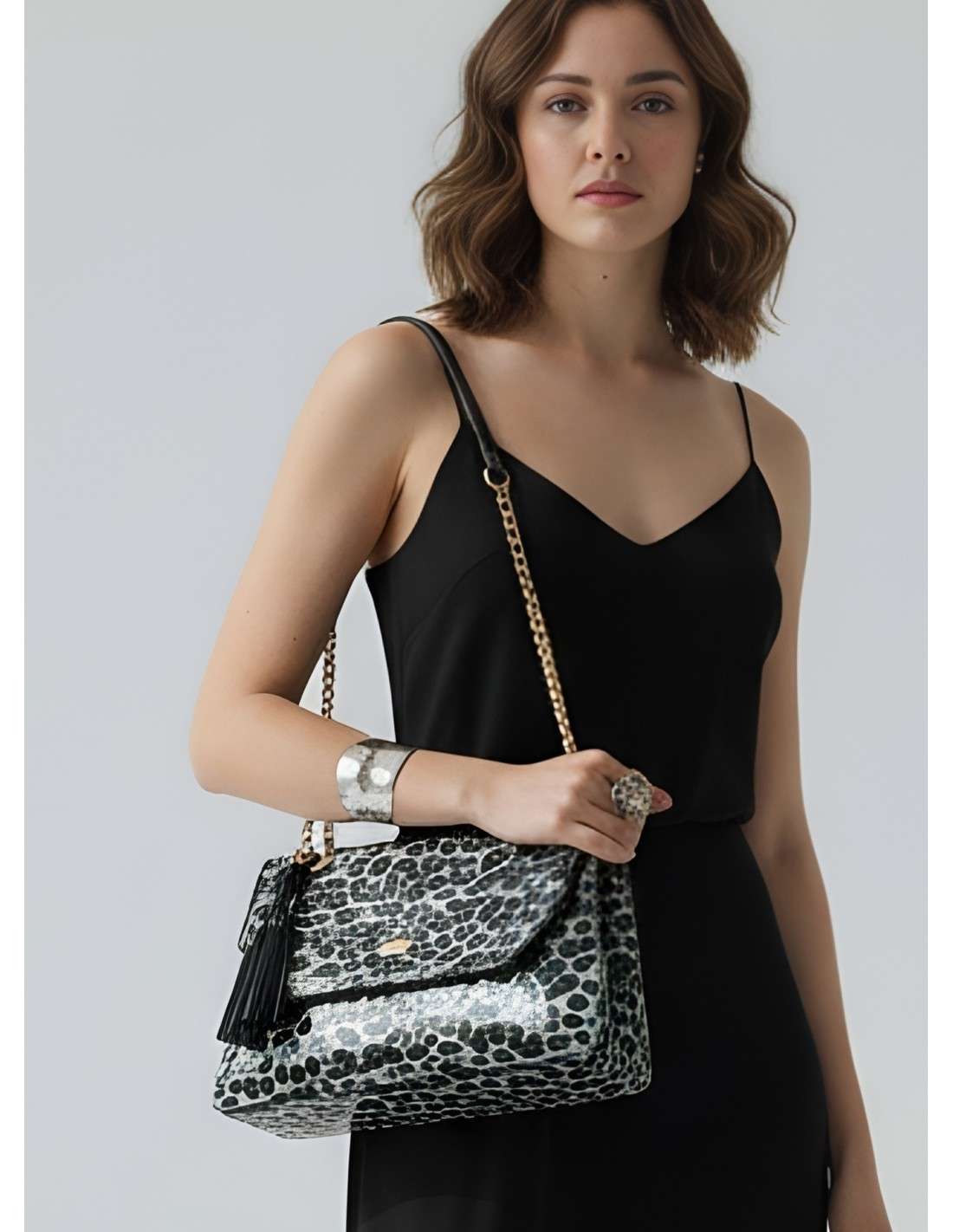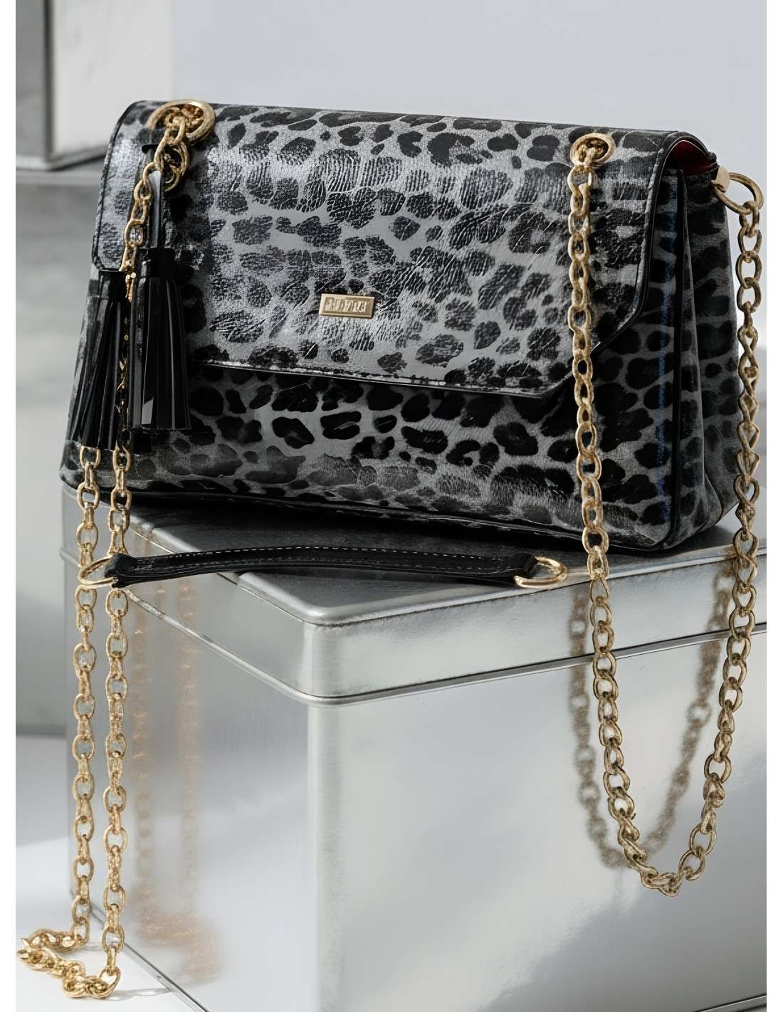 Cor: Estampado Animal / Preto verniz