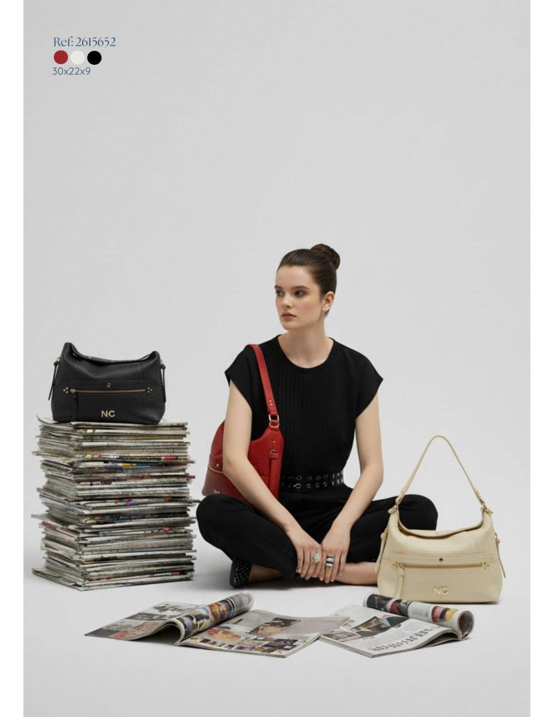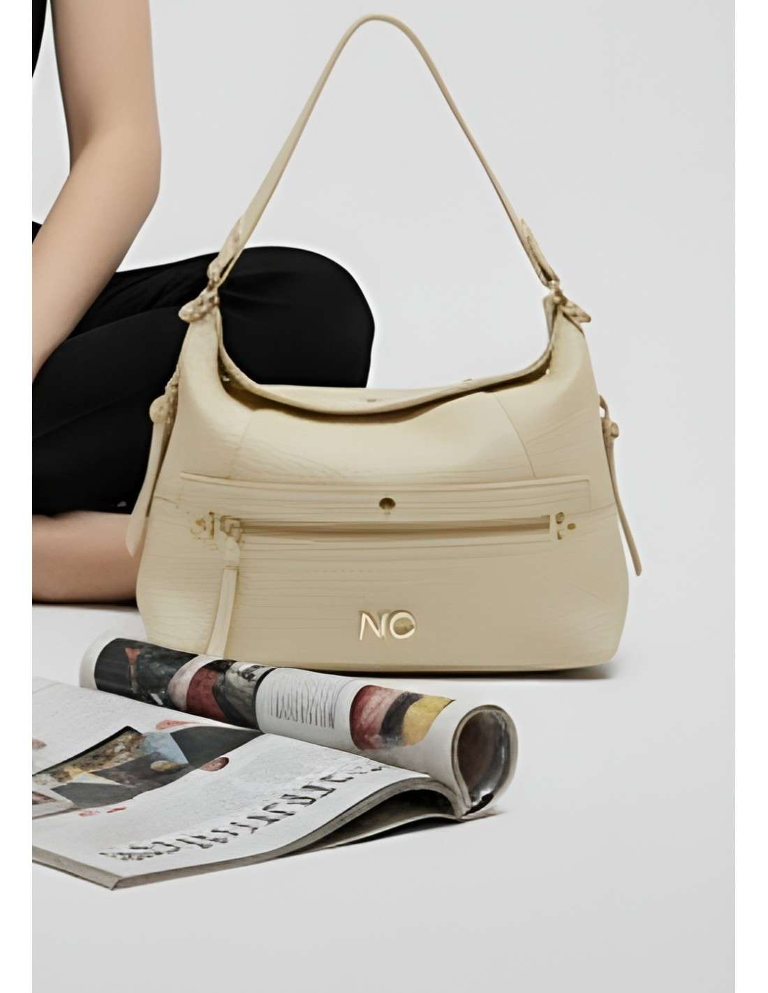 Mala shopper NOCO de grande capacidade com textura granulada e logótipo metálico. Design sofisticado e versátil, perfeita para o trabalho ou laz