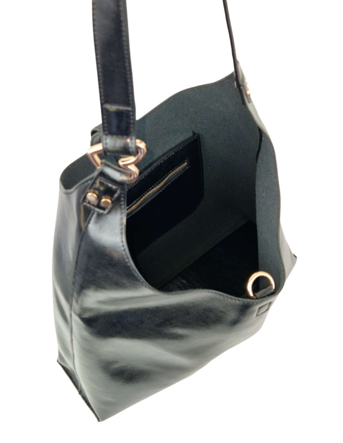 Mala em Pele PRIMADONA ,em cores classicas intemporais.Alça ombro e alça a tiracolo. Fecha com fecho de correr assim como o bolso exterior. Interior amplo divido em tres secções alem de bolsos laterais. Comprimento 34 Altura 31 largura 15 (cm)