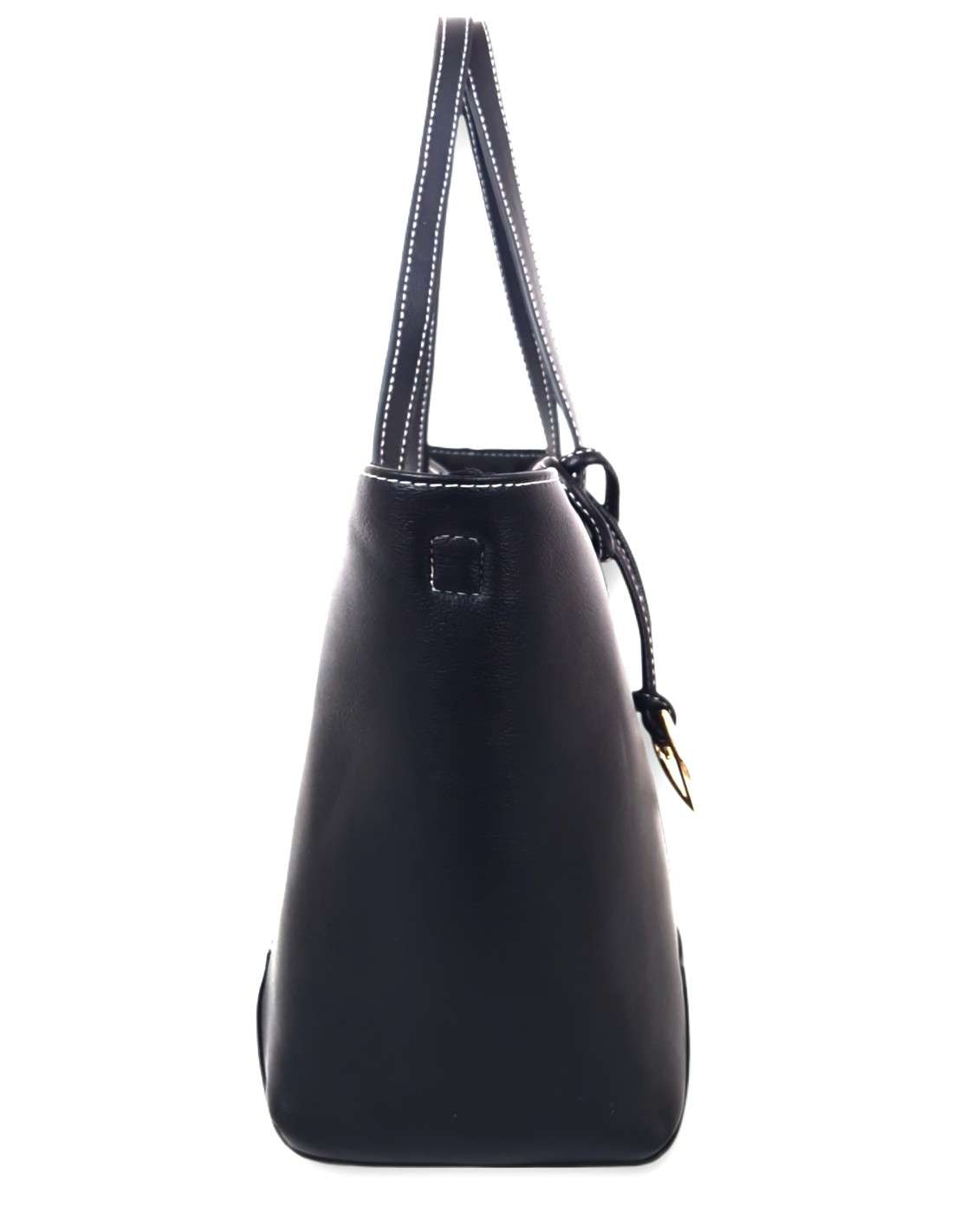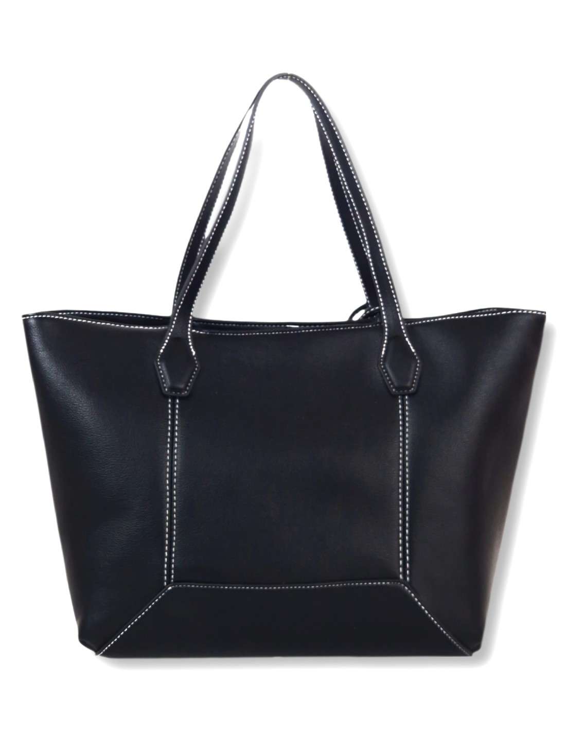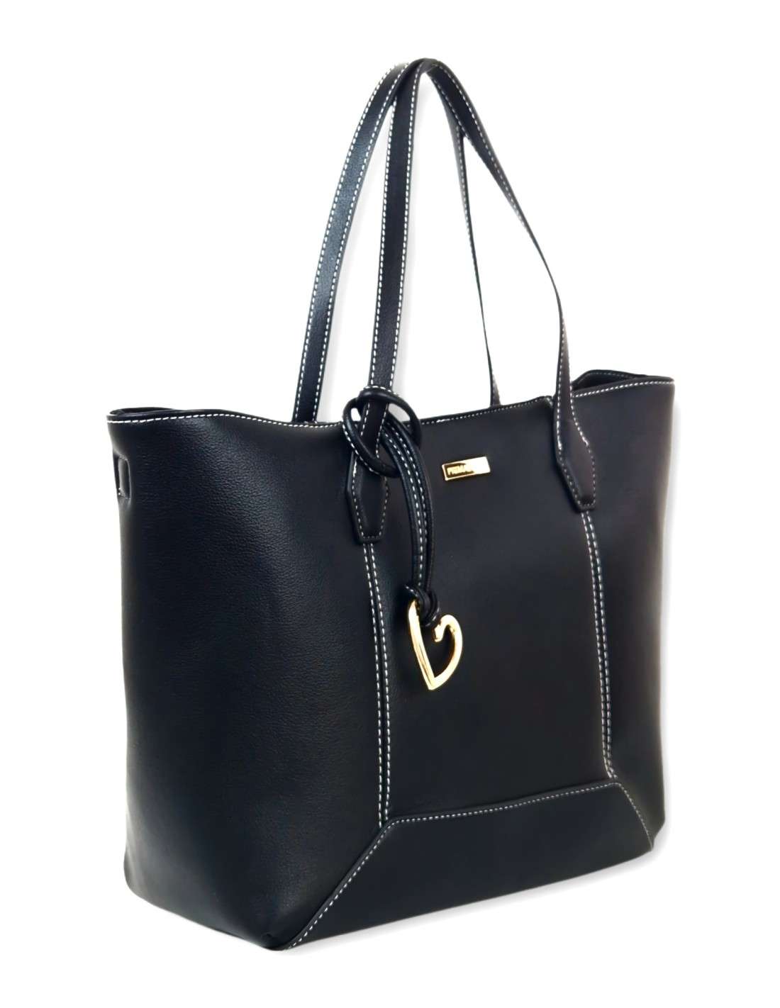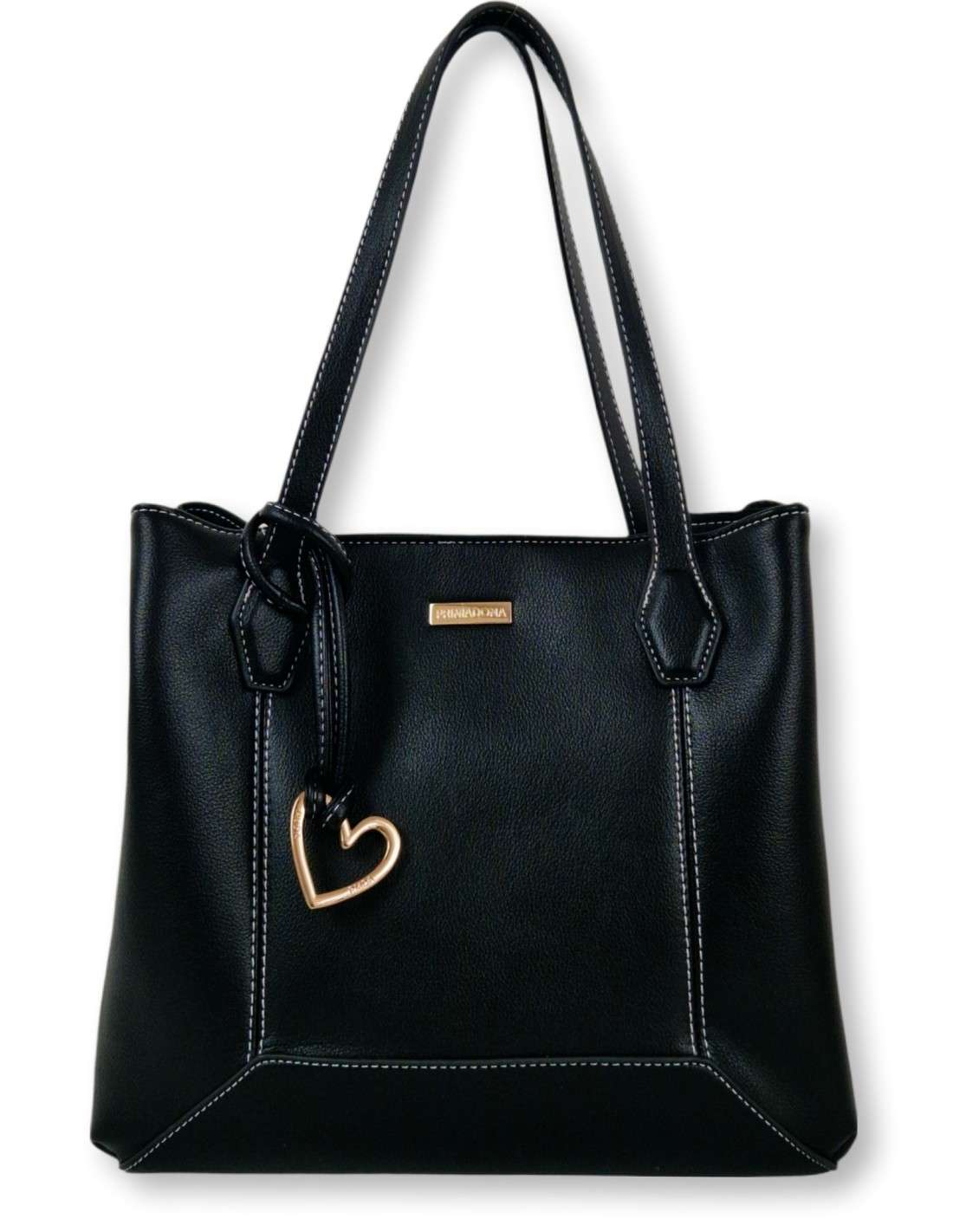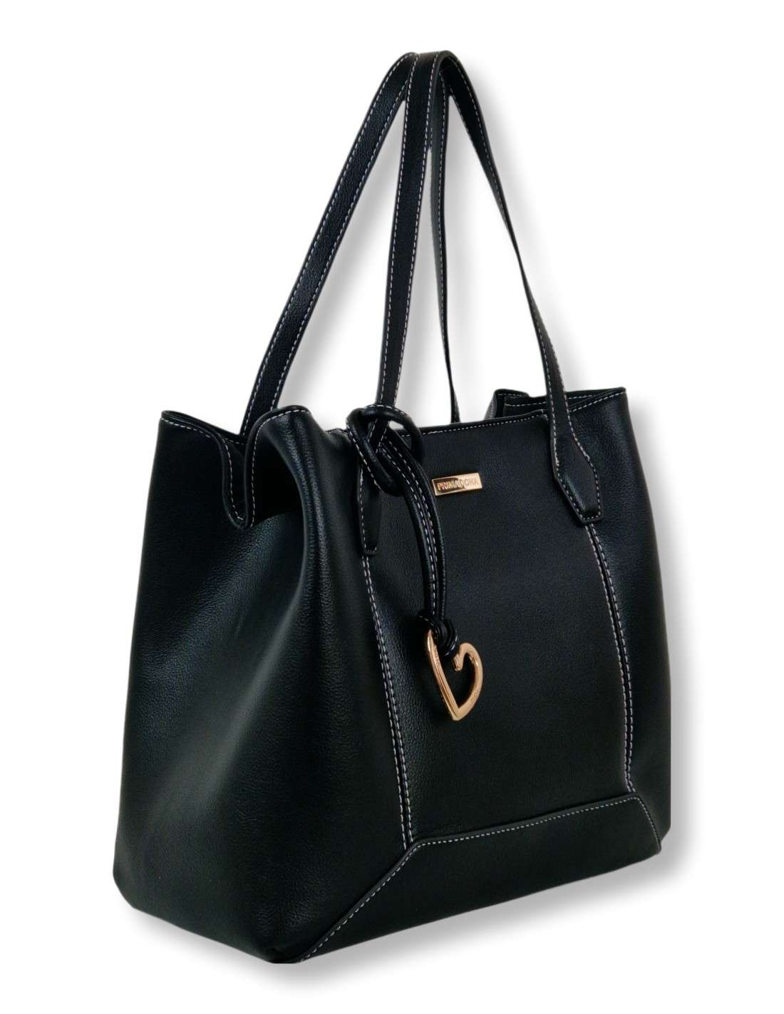 Mala Grande Primadona É uma mala grande e espaçosa, perfeita para o dia a dia, em pele sintética preta de qualidade, destaca-se pelo contraste elegante das alças bege e os rebordos em granate, adicionando um toque de sofisticação. O fecho dourado complementa o design, enquanto o interior amplo com bolsos laterais garante organização. 27x29x14 cm (largura...