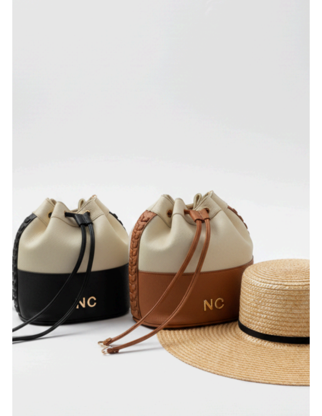 Mala Noco bicolor em PU premium. Design clássico com fecho ajustável, detalhes entrançados e acabamento elegante. Prática e estilosa! Bucket Bag